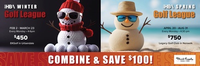 If you sign up for HBA Spring Golf League at Legacy Golf Club, you will receive a confirmation email with a discount code for $100 off the Indoor Winter Golf League. MUST register for the Spring Golf Outing FIRST to receive the discount code for the Winter Golf League.